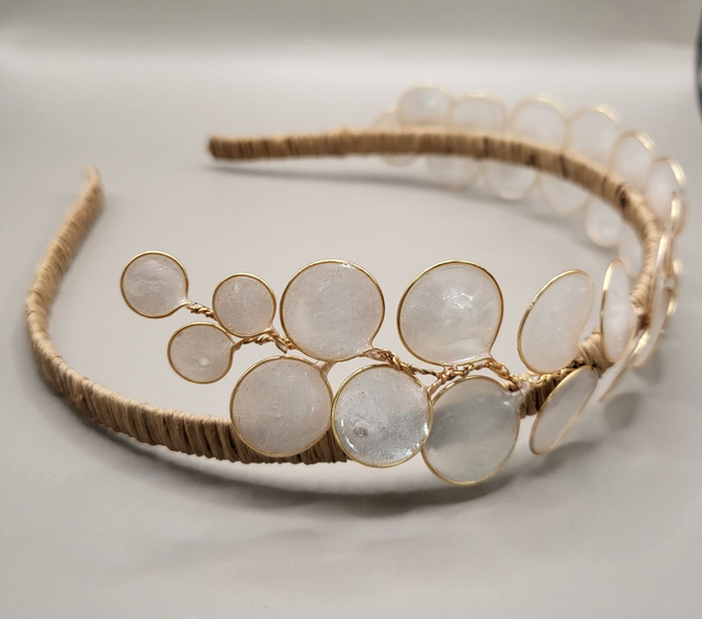 Matériaux : Fil de cuivre fin, résine teintée, serre-tête en métal
