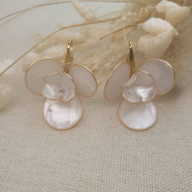 Les boucles d'oreille en forme de petites fleurs sont confectionnées dans mon atelier à partir de fil de cuivre de résine teintée couleur nacrée et sont en acier inoxydable.
