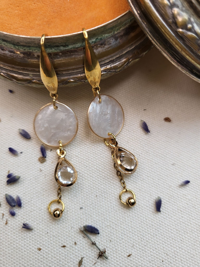 Assortiment avec les boucles d'oreilles: Créer une parure de mariage complète en choisissant les boucles d'oreilles assorties en résine nacrée, pour un look chic et coordonné le Jour J.
