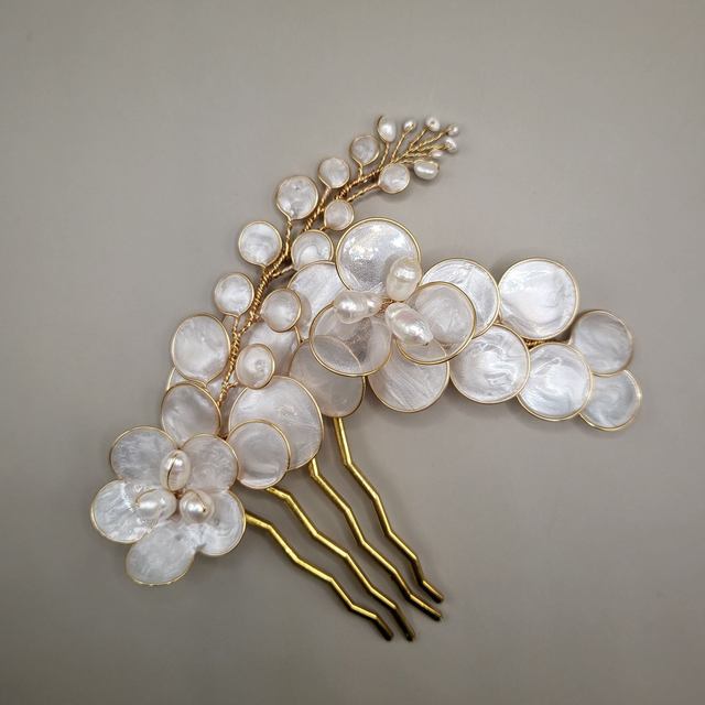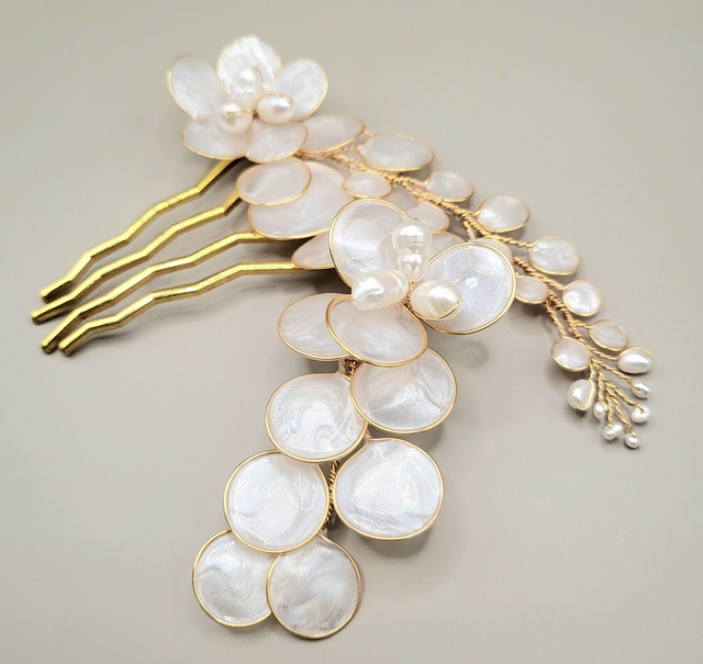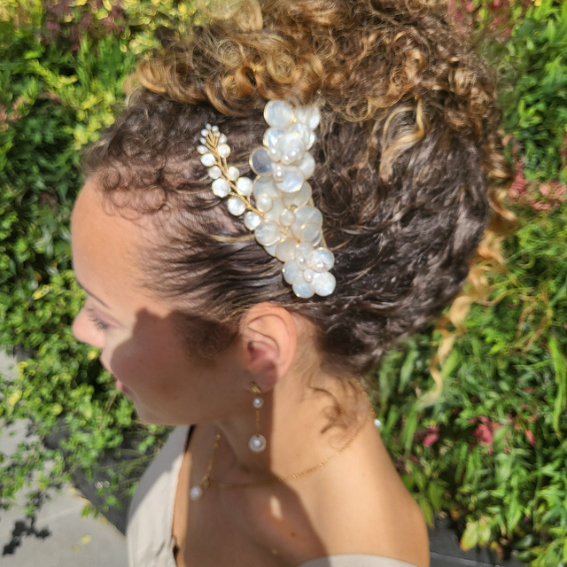 Bijou de cheveux lumineux et élégant qui apporte une touche raffinée à la coiffure de mariée. Se porte idéalement sur le côté ou à l'arrière de la coiffure.