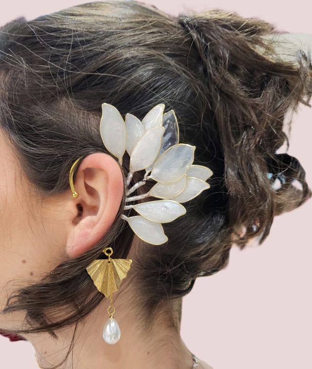 Le tour d'oreille se glisse délicatement derrière l'oreille sans nécessiter de piercing.